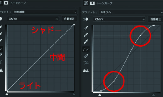 画像を調整する操作がパネルに凝縮されています。「倍率」「USM」「ライト・シャドウ」「トーンカーブ」「カラーコレクション」などを調整していました。Photoshopでは「トーンカーブ」や「特定色の選択」などに該当します。
