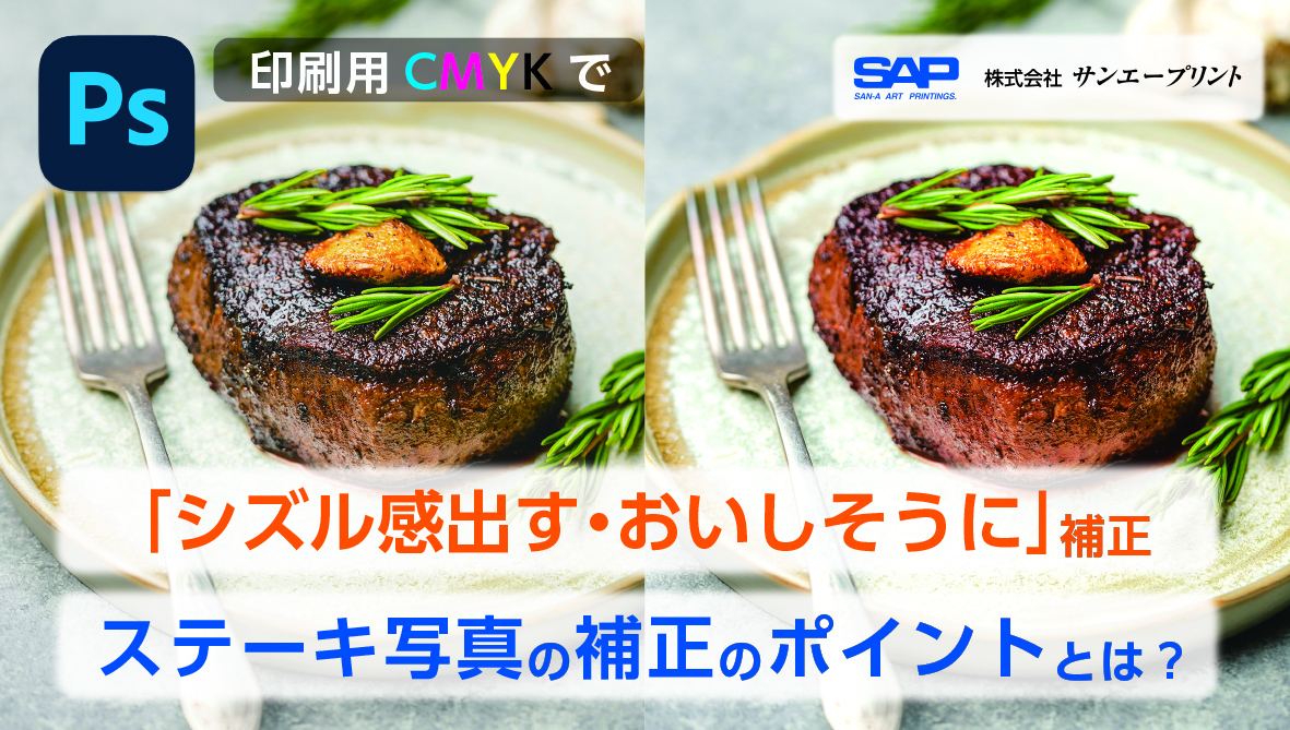 「シズル感出す・おいしそうに」でステーキ写真を補正【Photoshop 印刷向け色補正術】